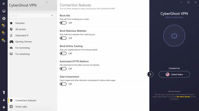 它功能强大,体积小,占用系统内存少。隐身浏览:使用VPN,您甚至不必安装任何隐身浏览器。连接到最近的服务器,您将不会感到Internet连接速度下降。